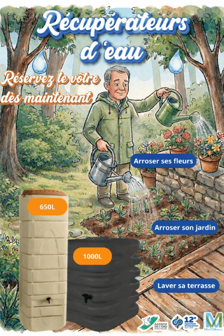 Dans le cadre de la préservation de la ressource en eau — tant en qualité qu'en quantité — la Communauté de Communes Mad & Moselle met en place une opération expérimentale d'aide à l'acquisition d'un récupérateur d'eau de pluie. Cette action vise à favoriser une gestion intelligente des eaux pluviales, limiter les inondations et anticiper les périodes de sécheresse.